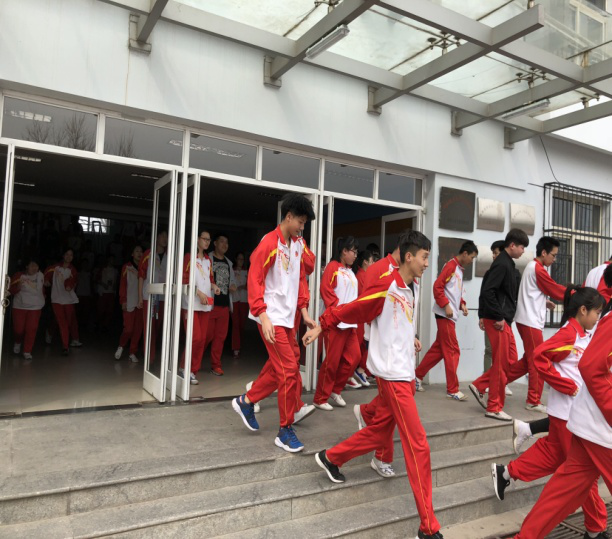 第二次演练开始,警报响起,本着“时间就是生命,纪律就是保障”,学校全体师生完全按照指定路线紧急撤离,此过程中认真对待,争分夺秒。集合完毕后,班主任汇报学生人数给部长,部长再汇报各部人数给梁主任。