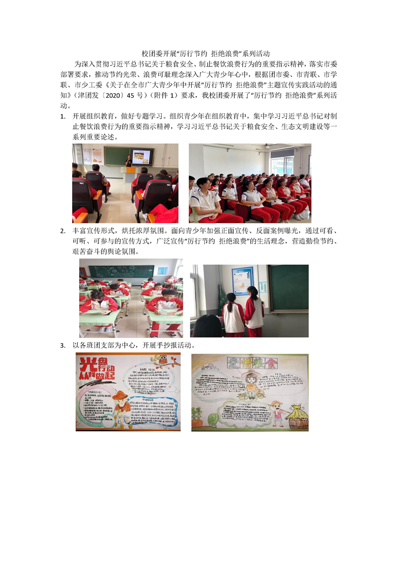 校团委开展“厉行节约 拒绝浪费”系列活动